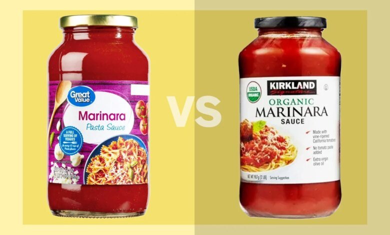 When you line up the two jars — Costco’s Kirkland Signature Organic Marinara Sauce and Walmart’s Great Value Organic Marinara Pasta Sauce — the ingredient panels reveal a clear story about how each brand defines quality.