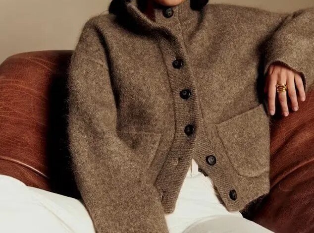 Top of my wish list (and seemingly everybody else’s) is this dark taupe jacket that will easily team with all the whites, browns and blacks in my wardrobe. It’s knitted from a wool-mohair blend and runs slightly oversized, meaning it can be layered over a frilly white blouse throughout autumn, and under a wool coat come winter.