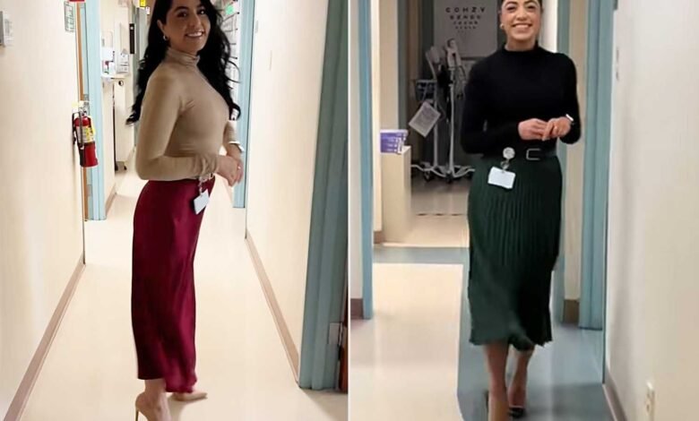 She shares her outfits and daily life on TikTok, and in October, she went viral when she posted a video of herself in a pair of Christian Louboutin pumps at work. “POV: your doctor walked in wearing Louboutins,” she wrote over the clip, which shows her walking down the clinic hallway in a black top, green accordion skirt and stiletto heels with the brand’s iconic red bottoms.