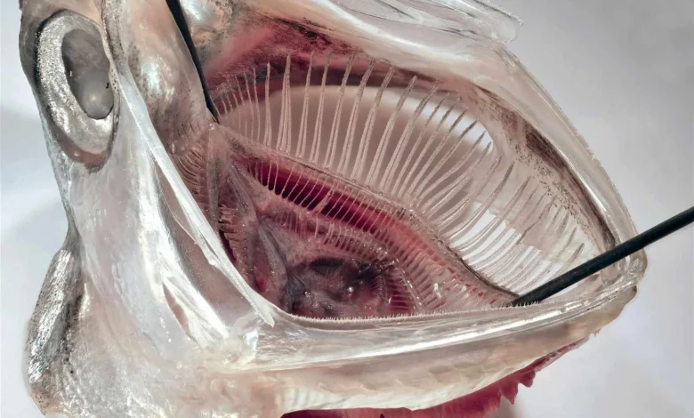 “During food intake, the water flows through the permeable funnel wall, is filtered, and the particle-free water is then released back into the environment via the gills,” Blanke explained. “However, the plankton is too big for this; it is held back by the natural sieve structure. Thanks to the funnel shape, it then rolls toward the gullet, where it is collected until the fish swallows, which empties and cleans the system.”